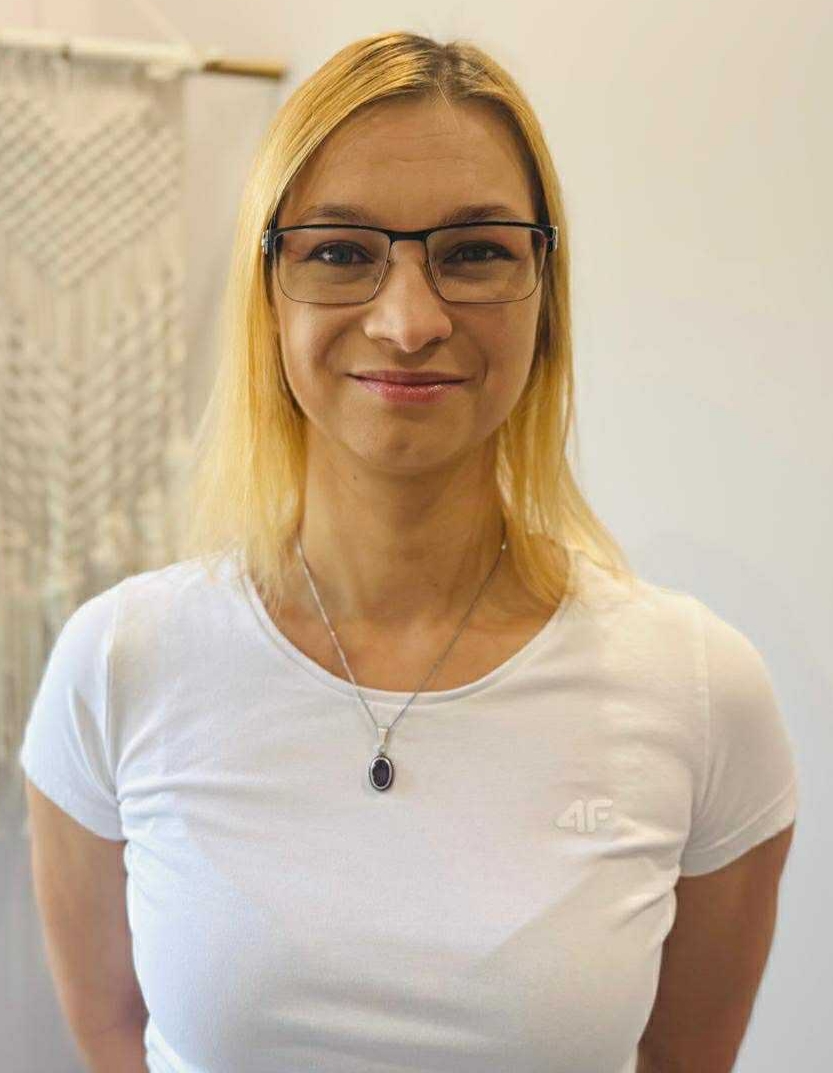 mgr Aleksandra Mitręga - fizjoterapeuta, terapeuta integracji sensorycznej, instruktor rekreacji ruchowej: hatha joga, aerobic, nowoczesne formy gimnastyki